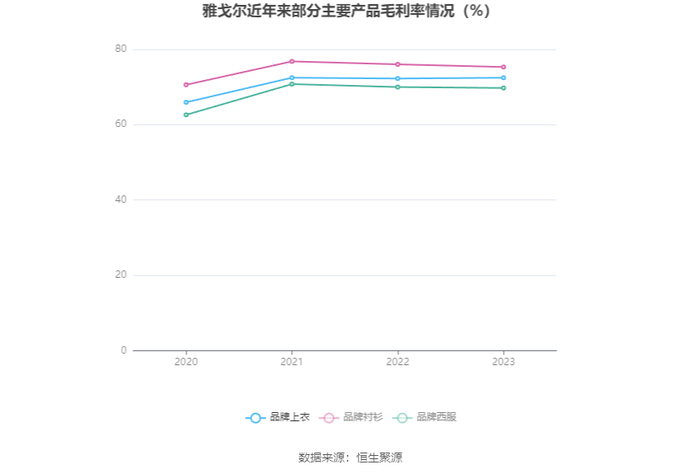 分产品看,品牌上衣、品牌衬衫、品牌西服2023年毛利率分别为72.49%、75.34%、69.77%。