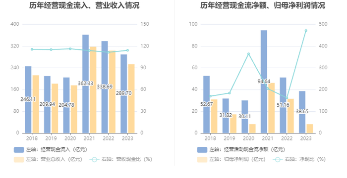 2023年,公司营业收入现金比为114.24%,净现比为472.05%。