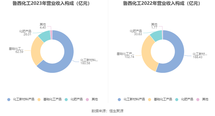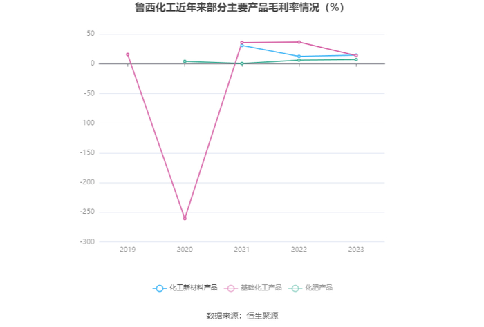 分产品看,化工新材料产品、基础化工产品、化肥产品2023年毛利率分别为14.54%、13.87%、7.17%。