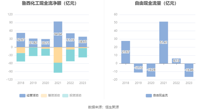 2023年,公司经营活动现金流净额为38.65亿元,同比下降24.46%;筹资活动现金流净额-3.36亿元,同比增加5.10亿元;投资活动现金流净额-34.28亿元,上年同期为-43.5亿元。