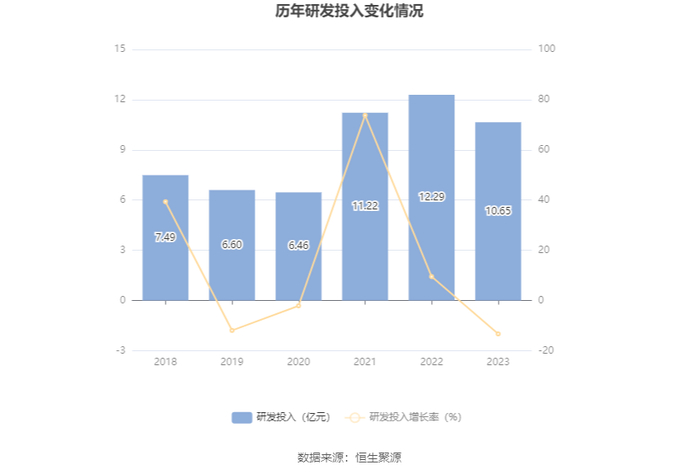 2023年全年,公司研发投入金额为10.65亿元,同比下降13.32%;研发投入占营业收入比例为4.20%,相比上年同期上升0.15个百分点。此外,公司全年研发投入资本化率为0。