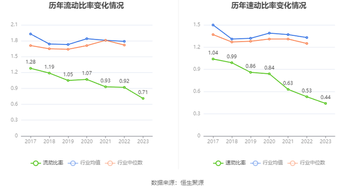 2023年,公司流动比率为0.71,速动比率为0.44。