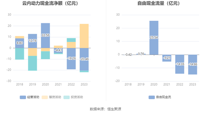 进一步统计发现,2023年公司自由现金流为-14.96亿元,上年同期为-14.36亿元。