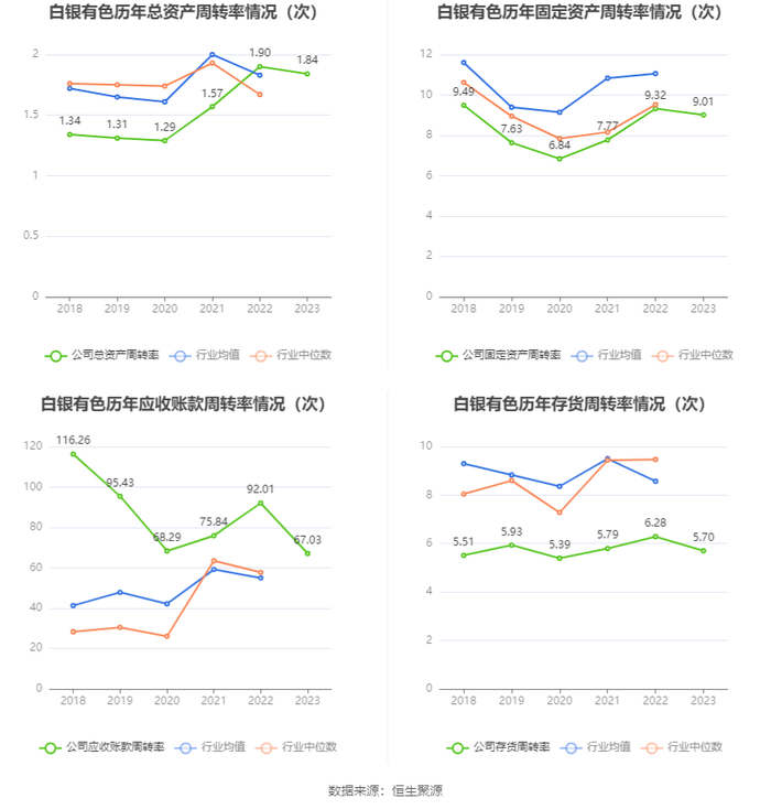 数据统计显示,白银有色近三年营业总收入复合增长率为12.29%,在铜行业已披露2023年数据的16家公司中排名第12。近三年净利润复合年增长率为4.42%,排名11/16。