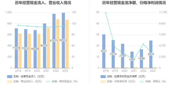 2023年,公司营业收入现金比为114.44%,净现比为2984.15%。