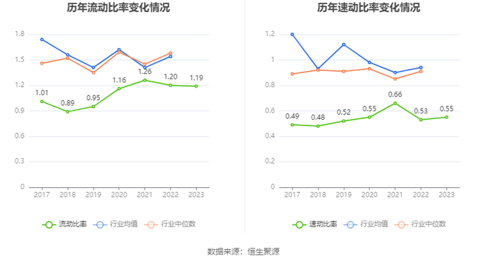 2023年,公司流动比率为1.19,速动比率为0.55。