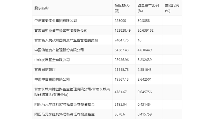 值得注意的是,根据年报数据,白银有色30.35%股份处于质押状态。其中,第一大股东中信国安实业集团有限公司质押22.48亿股公司股份,占其全部持股的99.89%。