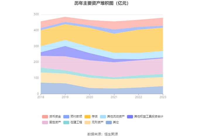 资产重大变化方面,截至2023年年末,公司预付款项较上年末减少30.55%,占公司总资产比重下降1.20个百分点;货币资金较上年末增加14.02%,占公司总资产比重上升1.04个百分点;应收账款较上年末增加50.00%,占公司总资产比重上升1.03个百分点;存货较上年末减少0.24%,占公司总资产比重下降0.92个百分点。