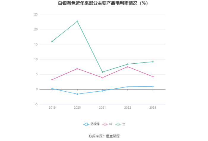 分产品看,阴极铜、锌、金2023年毛利率分别为0.97%、4.28%、9.27%。
