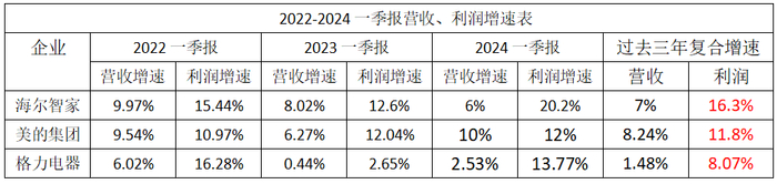 家电股是A股重要的“白马股”,也是基金重仓股,属于长线投资标的,因此过去三年复合增长率是非常重要的指标。我们从第一季度利润增速以及过去三年复合增长率来看,海尔智家都TOP3最高,特别是2024Q1利润增速超过20%,刺激了股价大涨。