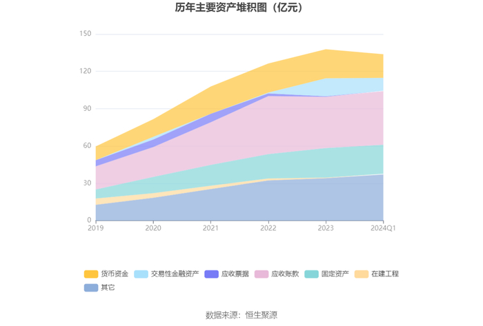 资产重大变化方面,截至2024年一季度末,公司交易性金融资产较上年末减少28.58%,占公司总资产比重下降2.78个百分点;货币资金较上年末减少18.53%,占公司总资产比重下降2.72个百分点;应收账款较上年末增加4.64%,占公司总资产比重上升2.32个百分点;其他非流动资产较上年末增加32.66%,占公司总资产比重上升0.93个百分点。
