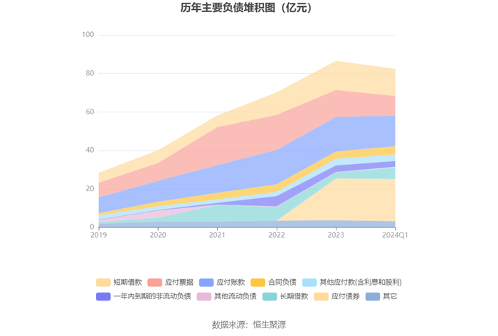 负债重大变化方面,截至2024年一季度末,公司应付票据较上年末减少26.75%,占公司总资产比重下降2.49个百分点;长期借款较上年末增加88.46%,占公司总资产比重上升2.17个百分点;应付账款较上年末减少11.73%,占公司总资产比重下降1.18个百分点;短期借款较上年末减少7.08%,占公司总资产比重下降0.48个百分点。