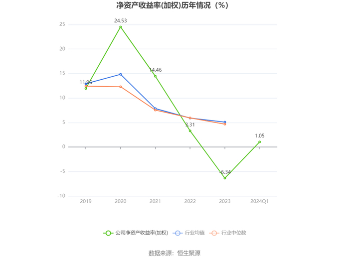 数据显示,2024年第一季度公司加权平均净资产收益率为1.05%,较上年同期增长0.02个百分点;公司2024年第一季度投入资本回报率为0.72%,较上年同期下降0.17个百分点。