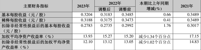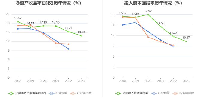 数据显示,2023年公司加权平均净资产收益率为13.93%,较上年同期下降1.34个百分点;公司2023年投入资本回报率为10.37%,较上年同期下降1.35个百分点。