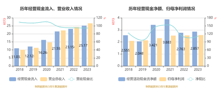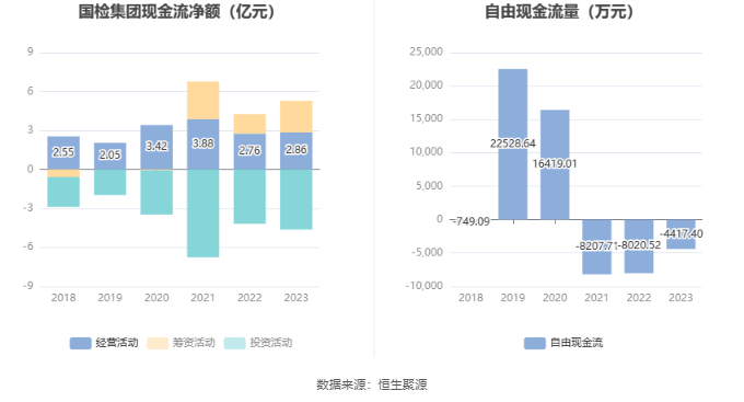 2023年,公司经营活动现金流净额为2.86亿元,同比增长3.40%;筹资活动现金流净额2.42亿元,同比增加9269.79万元;投资活动现金流净额-4.62亿元,上年同期为-4.18亿元。