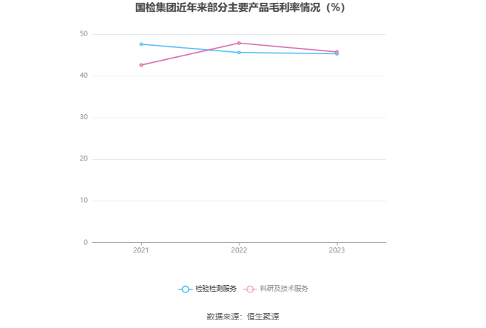 分产品看,检验检测服务、检测仪器及智能制造、科研及技术服务2023年毛利率分别为45.31%、40.60%、45.77%。