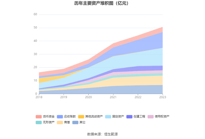 资产重大变化方面,截至2023年年末,公司应收账款较上年末增加28.77%,占公司总资产比重上升2.62个百分点;固定资产较上年末增加25.55%,占公司总资产比重上升2.26个百分点;在建工程较上年末减少5.32%,占公司总资产比重下降1.48个百分点;商誉较上年末增加4.73%,占公司总资产比重下降1.30个百分点。