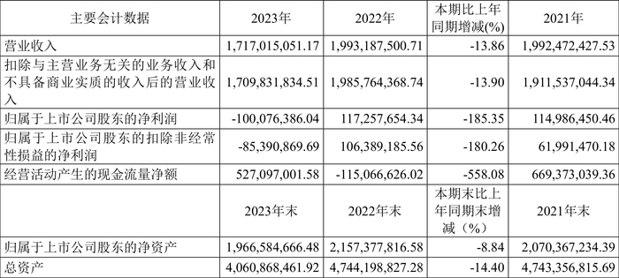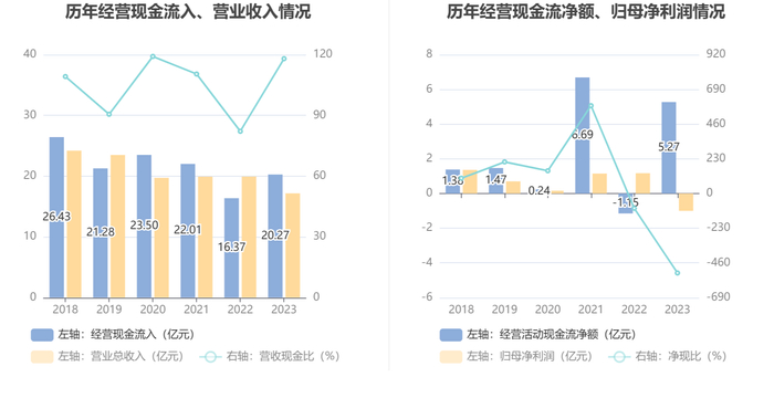 2023年,公司经营活动现金流净额为5.27亿元,同比增加6.42亿元;筹资活动现金流净额-3.02亿元,同比增加1947.45万元;投资活动现金流净额-3.39亿元,上年同期为-2.15亿元。