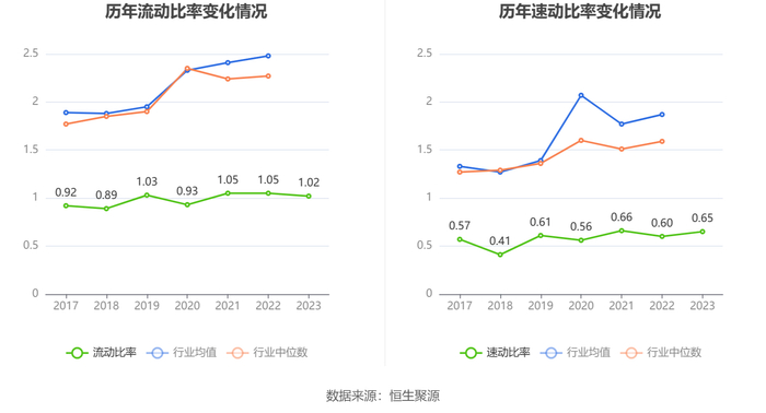 2023年,公司流动比率为1.02,速动比率为0.65。