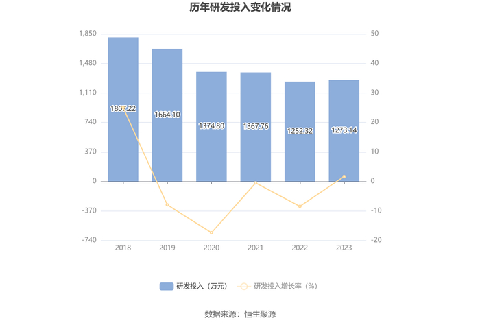 2023年全年,公司研发投入金额为1273.14万元,同比增长1.66%;研发投入占营业收入比例为0.74%,相比上年同期上升0.11个百分点。此外,公司全年研发投入资本化率为0。