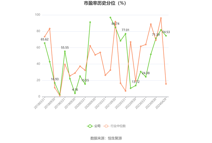 市盈率为负时,不显示当期分位数,会导致折线图中断。