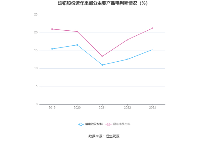 分产品看,蓄电池及材料、锂电池及材料2023年毛利率分别为15.28%、21.24%。