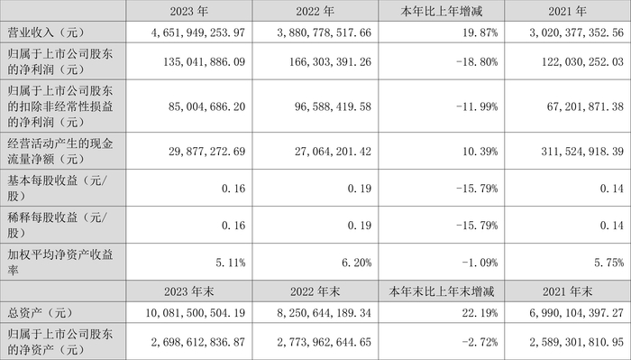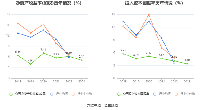 数据显示,2023年公司加权平均净资产收益率为5.11%,较上年同期下降1.09个百分点;公司2023年投入资本回报率为3.40%,较上年同期下降0.69个百分点。