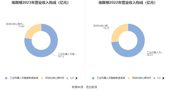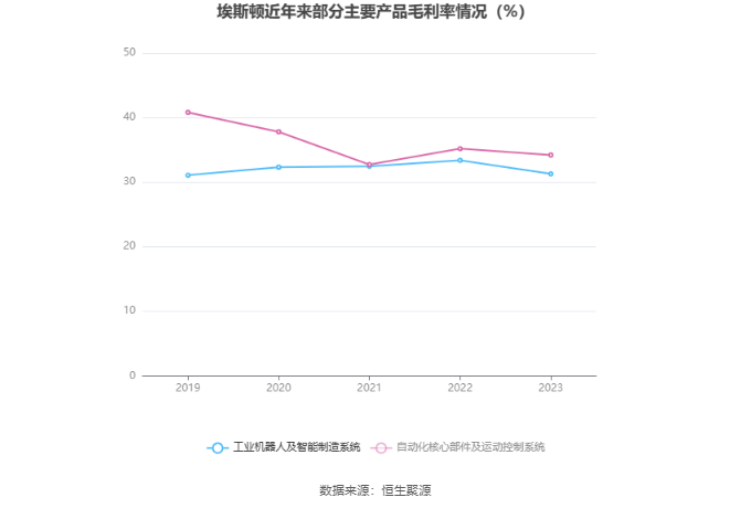 分产品看,工业机器人及智能制造系统、自动化核心部件及运动控制系统2023年毛利率分别为31.28%、34.19%。