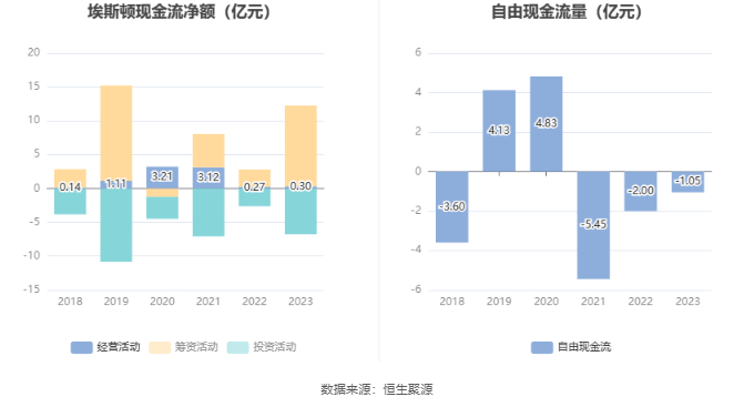 进一步统计发现,2023年公司自由现金流为-1.05亿元,上年同期为-2.00亿元。