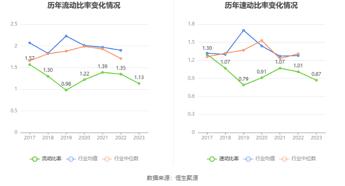 2023年,公司流动比率为1.13,速动比率为0.87。