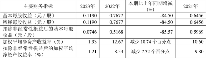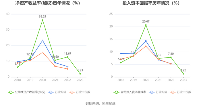 数据显示,2023年公司加权平均净资产收益率为1.93%,较上年同期下降10.74个百分点;公司2023年投入资本回报率为1.23%,较上年同期下降6.57个百分点。