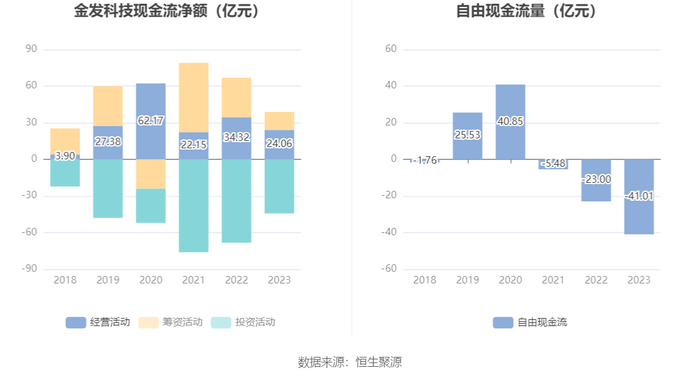 进一步统计发现,2023年公司自由现金流为-41.01亿元,上年同期为-23.00亿元。