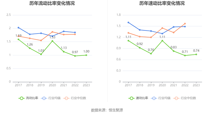 2023年,公司流动比率为1.00,速动比率为0.74。