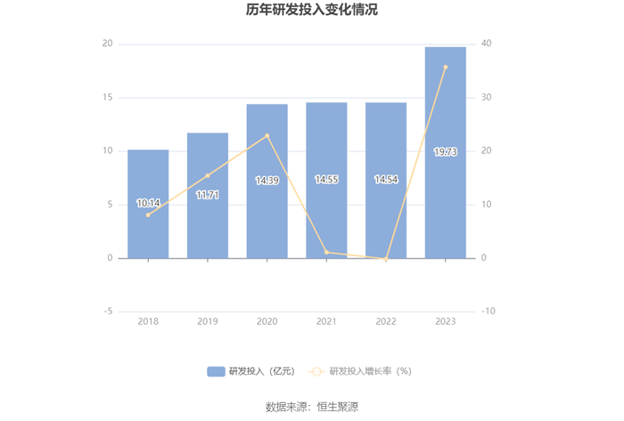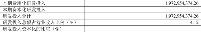 2023年全年,公司研发投入金额为19.73亿元,同比增长35.72%;研发投入占营业收入比例为4.12%,相比上年同期上升0.52个百分点。此外,公司全年研发投入资本化率为0。