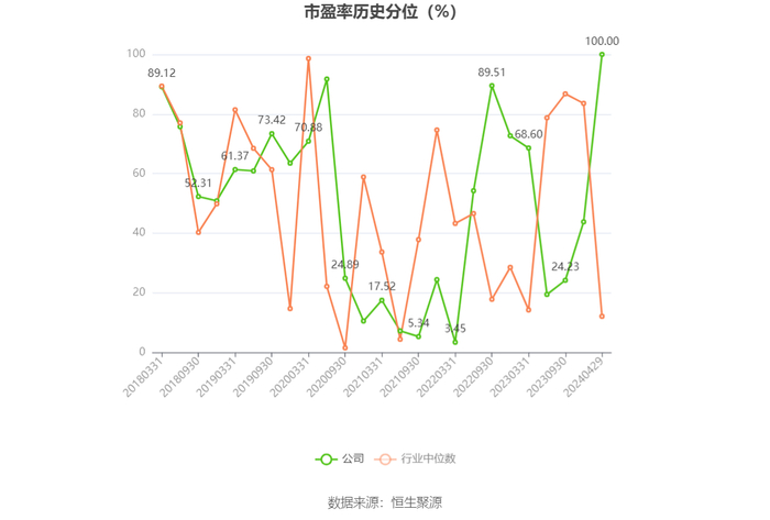 市盈率为负时,不显示当期分位数,会导致折线图中断。