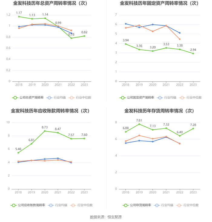 营运能力方面,2023年,公司公司总资产周转率为0.82次,上年同期为0.78次(2022年行业平均值为0.87次,公司位居同行业16/21);固定资产周转率为2.94次,上年同期为3.38次(2022年行业平均值为5.11次,公司位居同行业15/21);公司应收账款周转率、存货周转率分别为7.60次、7.28次。