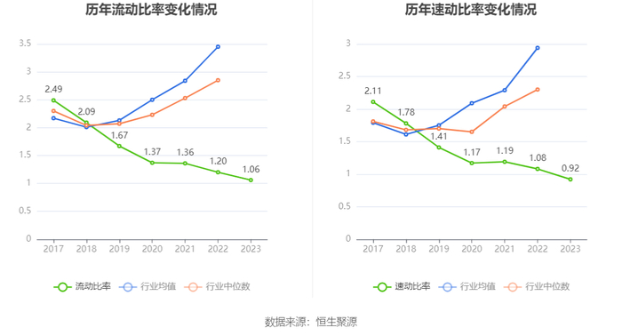 2023年,公司流动比率为1.06,速动比率为0.92。