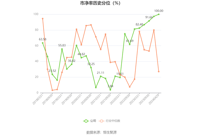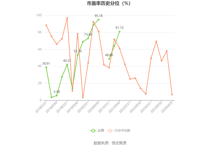 市盈率为负时,不显示当期分位数,会导致折线图中断。