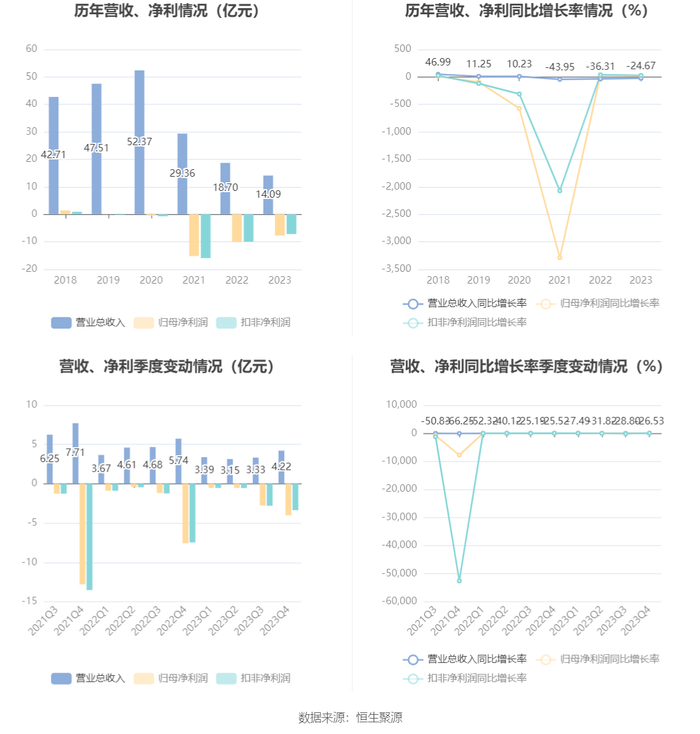 数据显示,2023年公司加权平均净资产收益率为-108.77%,较上年同期下降48.73个百分点;公司2023年投入资本回报率为-36.29%,较上年同期下降5.64个百分点。
