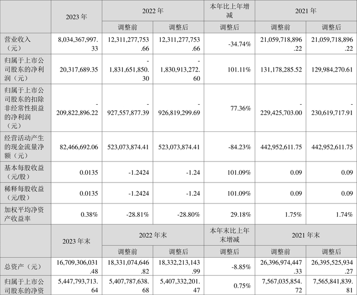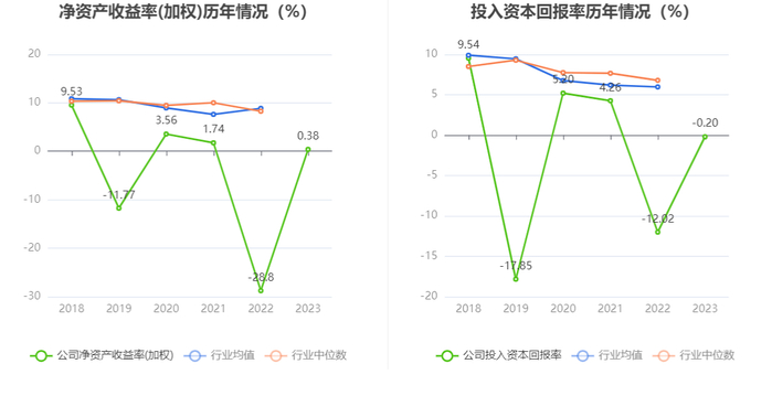 数据显示,2023年公司加权平均净资产收益率为0.38%,较上年同期增长29.18个百分点;公司2023年投入资本回报率为-0.20%,较上年同期增长11.82个百分点。