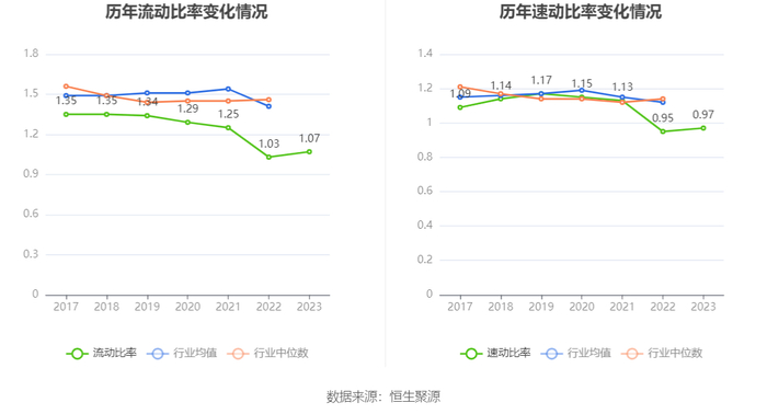 2023年,公司流动比率为1.07,速动比率为0.97。