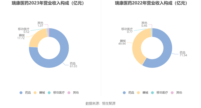 分产品看,药品、器械、移动医疗2023年毛利率分别为7.49%、18.98%、25.55%。