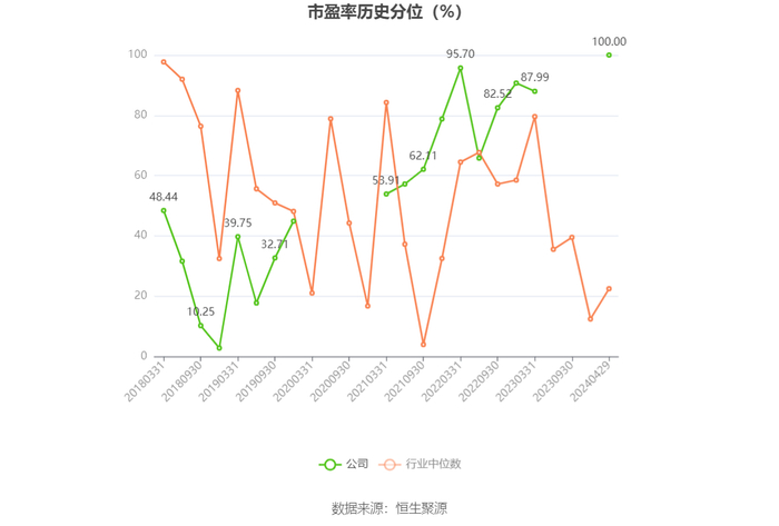 市盈率为负时,不显示当期分位数,会导致折线图中断。