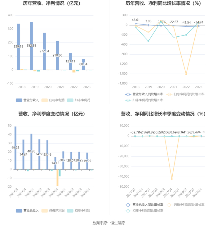 进一步统计发现,2023年公司自由现金流为-34.96亿元,上年同期为36.34亿元。
