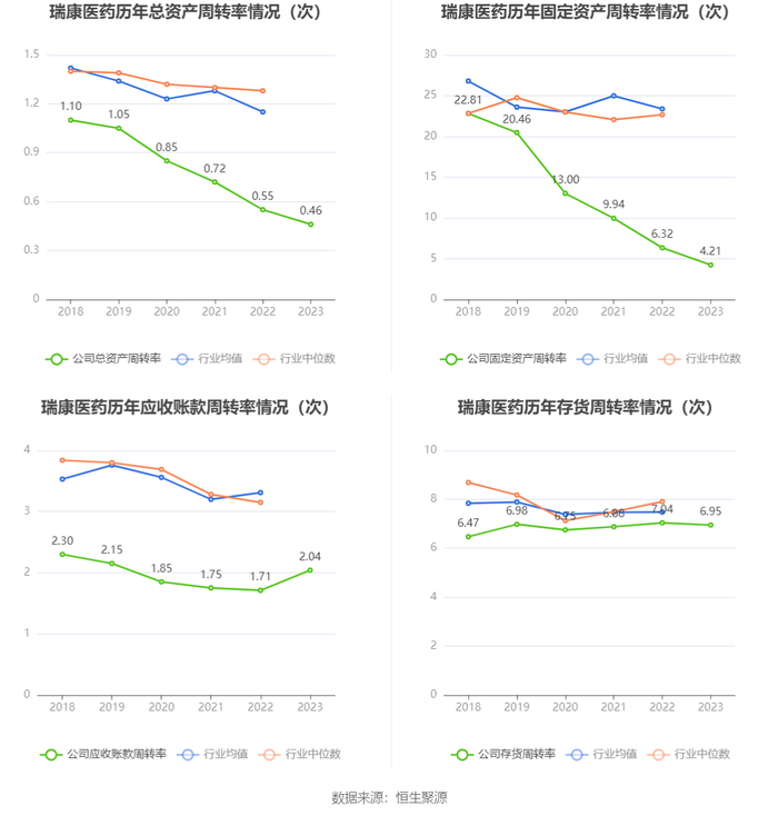 数据统计显示,瑞康医药近三年营业总收入复合增长率为-33.43%,在医药流通行业已披露2023年数据的24家公司中排名第24。近三年净利润复合年增长率为-57.32%,排名20/24。