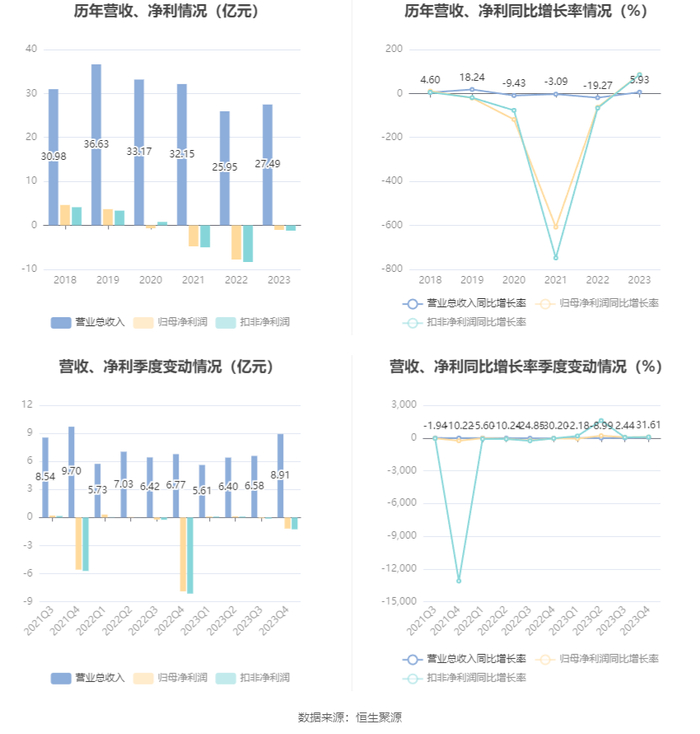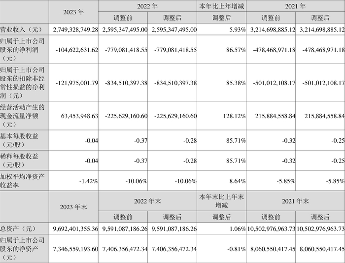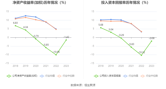 数据显示,2023年公司加权平均净资产收益率为-1.42%,较上年同期增长8.64个百分点;公司2023年投入资本回报率为-2.08%,较上年同期增长8.24个百分点。