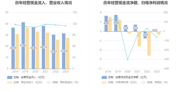 2023年,公司营业收入现金比为114.88%,净现比为-60.65%。