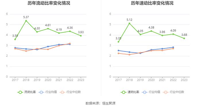 2023年,公司流动比率为3.93,速动比率为3.68。