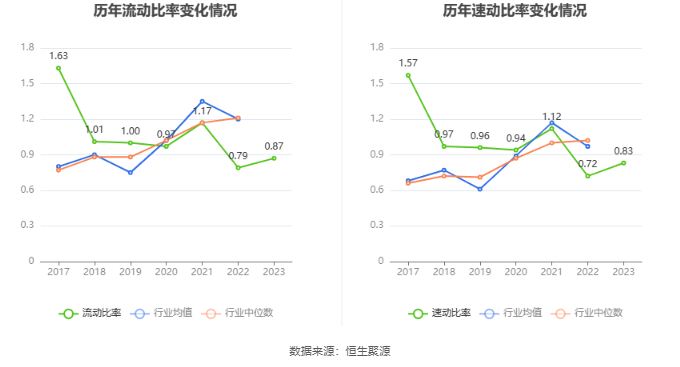 2023年,公司流动比率为0.87,速动比率为0.83。