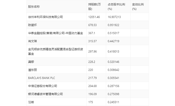 年报显示,2023年年末公司十大流通股东中,新进股东为华泰金融控股(香港)有限公司-中国动力基金、潘东丽、BARCLAYS BANK PLC、中信证券股份有限公司、银河德睿资本管理有限公司,取代了三季度末的张天雨、海南雨创科技有限公司、班宝林、代学荣。在具体持股比例上,陈潮怀、肖文瑛、金元顺安优质精选灵活配置混合型证券投资基金、龚卿持股有所上升。